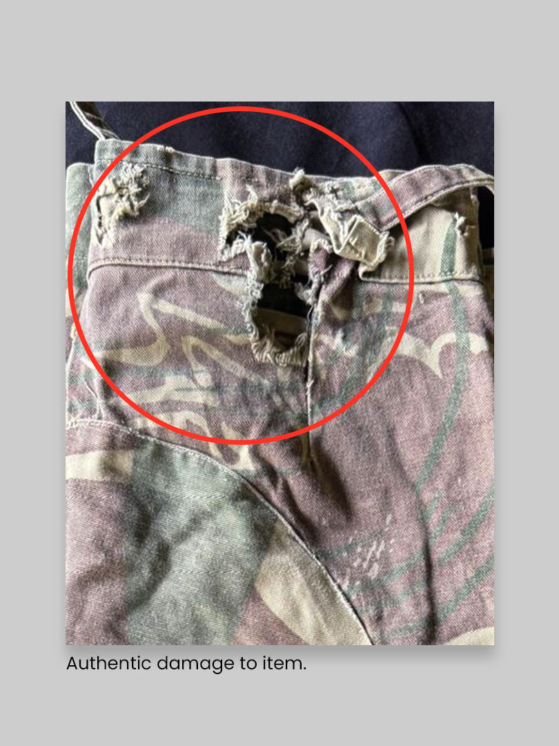 These battle worn Rhodesian camo trousers were donated by Dale Collett. Dale joined the Rhodesian SAS in 1971, was commissioned as an officer in 1973, then served with the RAR (Rhodesian African Rifles) due to his exceptional linguistic skills – he spoke Zulu/Ndebele fluently. However, he was recruited within months into the elite Selous Scouts Regiment, by the Commanding Officer, Lt. Col. Ron Reid-Daly.